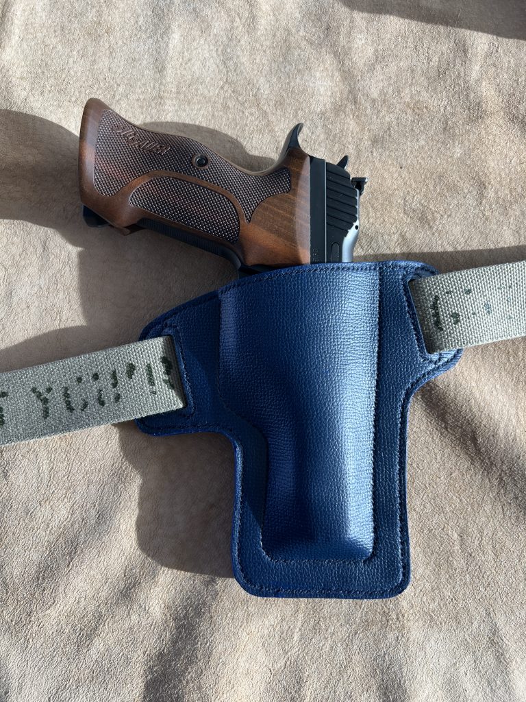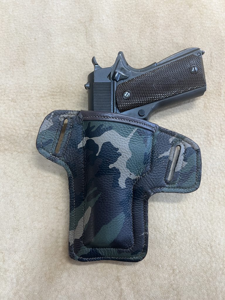 Large Custom holsters are made upon your gun dimension and your specifications. We use only premium quality leather and linen thread. Each holster is design, hand cut and assemble using saddle stitching, with the same craftsmanship as a very high end bag. From $175.