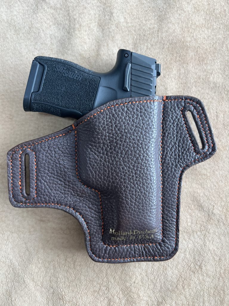 Small Custom holsters are made upon your gun dimension and your specifications. We use only premium quality leather and linen thread. Each holster is design, hand cut and assemble using saddle stitching, with the same craftsmanship as a very high end bag. From $175.